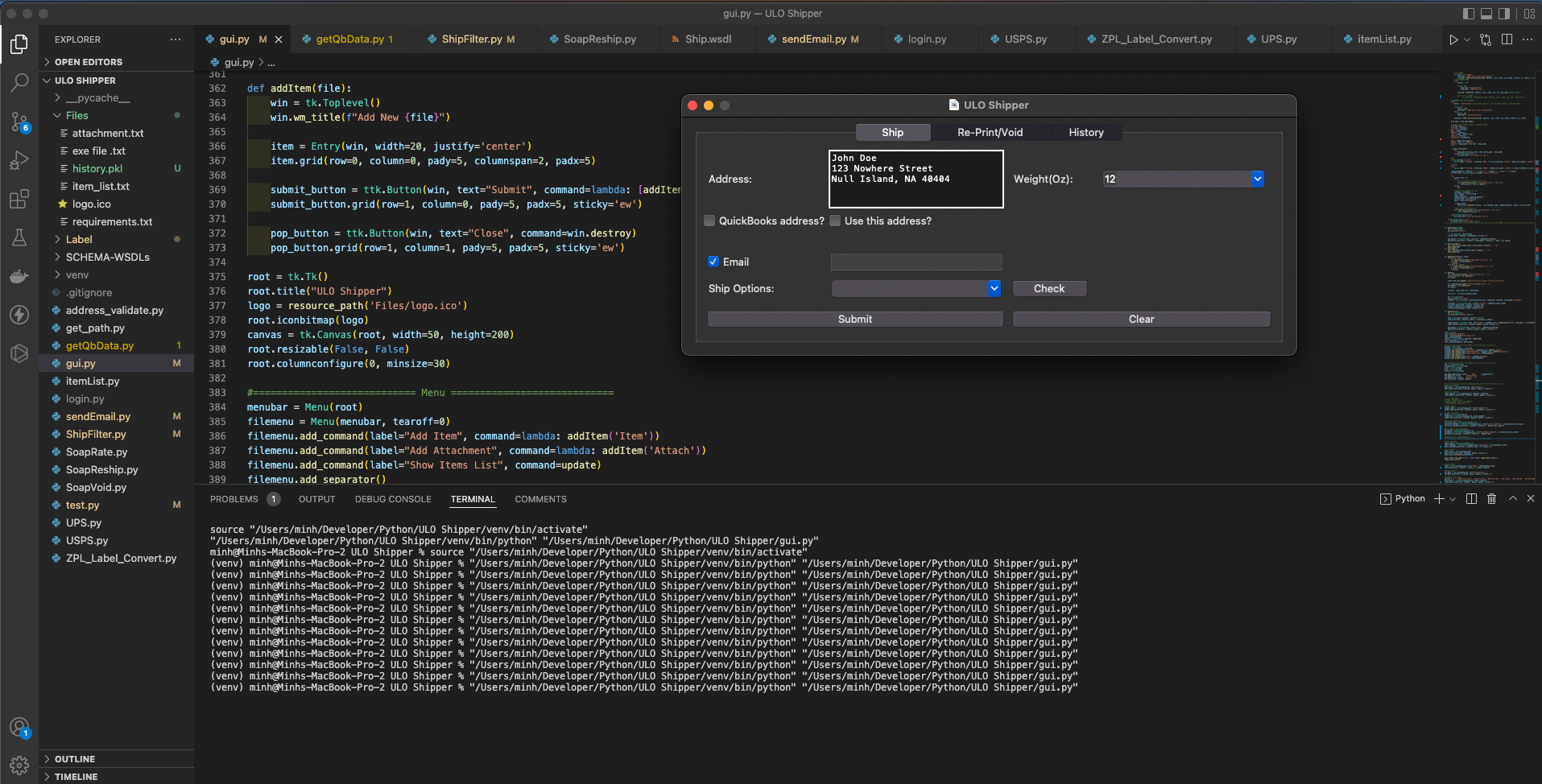 Built a custom Shipping App using UPS, Shippo, and QuickBooks APIs to streamline shipping services into one app, tailored to improve employee workflow efficiency.